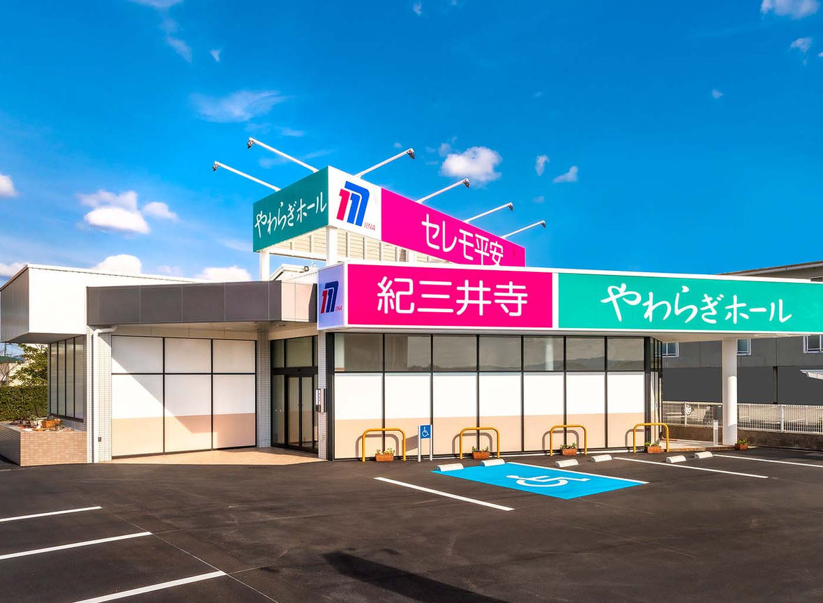 兵庫エリア 阪和エリア 結婚式場 ラヴィーナ和歌山 〒640-8451 和歌山市中639番地6 073-454-0010 ラ・メゾン Suite(りんくう) 〒598-0048 泉佐野市りんくう往来北2番地48 072-458-2000 葬儀会館 大阪エリア 和泉セレモ平安 〒594-1151 和泉市唐国町一丁目9番2号 0725-53-5588 岸和田セレモ平安 〒596-0041 岸和田市下野町三丁目10番19号 072-423-5969 りんくうセレモ平安 〒598-0045 泉佐野市松原一丁目3番15号 072-463-5969 泉佐野セレモ平安 〒598-0002 泉佐野市中庄1090番地1 072-461-2828 泉南セレモ平安 〒590-0533 泉南市中小路三丁目2番1号 072-484-5969 阪南セレモ平安 〒599-0202 阪南市下出587番地2 072-473-5969 貝塚セレモ平安 〒597-0054 貝塚市堤一丁目4番15号 072-438-5969 泉南信達セレモ平安 〒590-0525 泉南市馬場725番地 072-482-5969 土生やわらぎホール 〒596-0825 岸和田市土生町二丁目12番29号 072-430-5969 和歌山エリア 和歌山セレモ平安 〒640-8319 和歌山市手平五丁目1番23号 073-436-5969 榎原やわらぎホール 〒640-8434 和歌山市榎原245番地1 073-453-5969 鳴神セレモ平安 〒640-8303 和歌山市鳴神1007番地3 073-473-5969 紀ノ川セレモ平安 〒640-8401 和歌山市福島111番地 073-457-5969 紀ノ川やわらぎホール 〒640-8401 和歌山市福島111番地 073-457-5969 有本セレモ平安 〒640-8390 和歌山市有本728番地1 073-425-5969 西浜セレモ平安 〒640-8404 和歌山市湊41番地3 073-424-5969 海南セレモ平安 〒642-0034 海南市藤白194番地4 073-484-3300 岩出セレモ平安 〒649-6202 岩出市根来934番地1 0736-69-5969 直川やわらぎホール 〒640-8481 和歌山市直川512番地1 073-464-5969 紀三井寺やわらぎホール 〒641-0012 和歌山市紀三井寺811番地39 073-488-5969 永穂やわらぎホール 〒649-6333 和歌山市永穂127番地1 073-462-5969